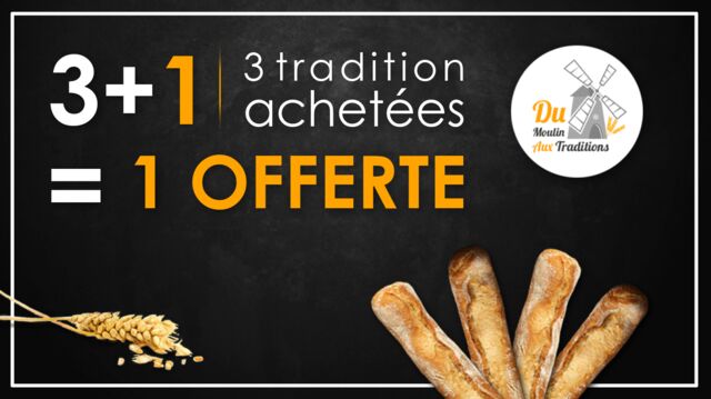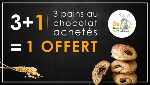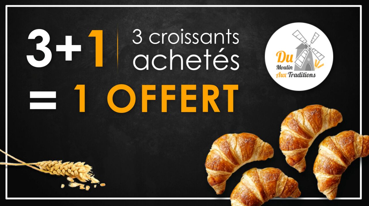 Profitez de nos offres en 3+1 =1 offert valable pour nos croissants, pains aux chocolats, pains traditions....